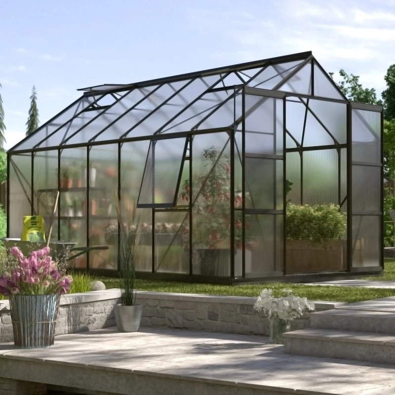 L’avis du spécialiste sur la serre de jardin Jupiter 11,5m² en alu noir et polycarbonate 6mm – Vitavia :