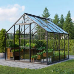 Ce modèle se démarque par ses dimensions spacieuses, qui permettent à vos plantes de s’épanouir dans un environnement favorable. Les profilés de la structure sont fabriqués en aluminium, avec un revêtement par poudrage noir. Grâce à ce traitement de surface, les profilés sont hautement résistants à la corrosion et aux conditions météorologiques adverses.