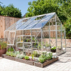 La serre de jardin Meridian 1 de Vitavia, offre une surface de 8,3m², parfaitement adaptée aux amateurs de jardinage. Certifiée TÜV, elle constitue la solution idéale pour cultiver vos plantes préférées en toute tranquillité, directement chez vous.