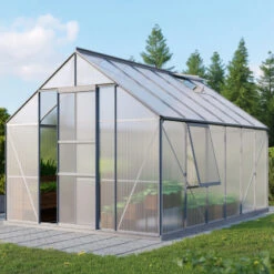 La porte coulissante, avec des dimensions de 60x175cm, assure un accès aisé et facilite le passage lorsque vous avez les bras chargés. Cette serre bénéficie d’une garantie de 15 ans sur la structure et 10 ans sur les panneaux contre les intempéries.
