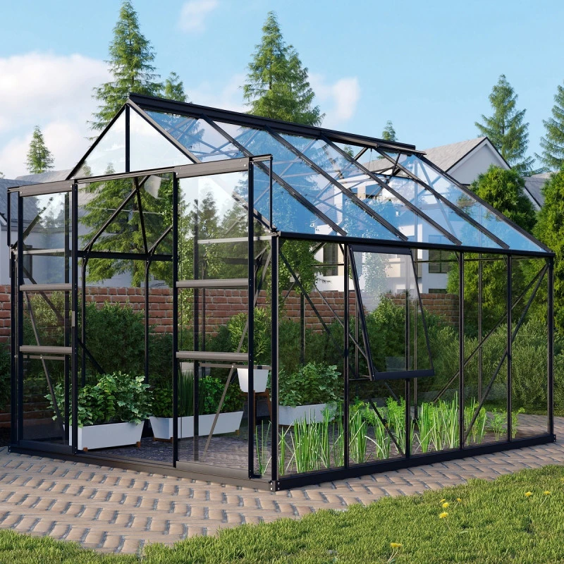 L’avis du spécialiste sur la serre de jardin Meridian2 8,3m² en aluminium noir et panneaux de verre de sécurité de 3mm – Vitavia :