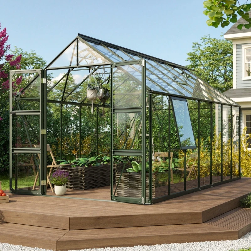 L’avis du spécialiste sur la serre de jardin Olymp 11,5m² en alu émeraude et verre de sécurité 3mm – Vitavia :