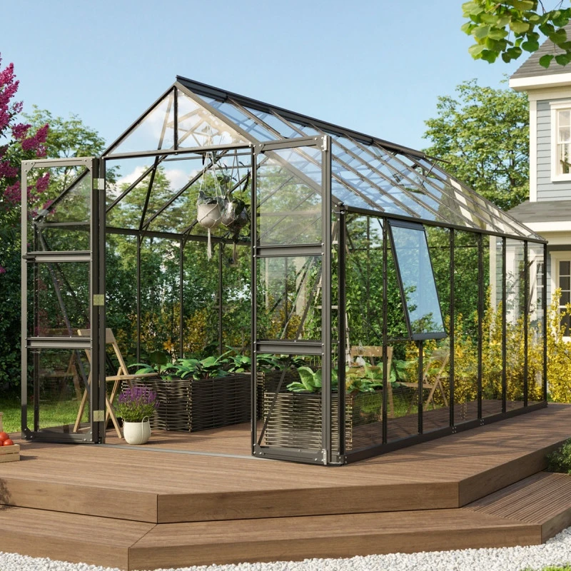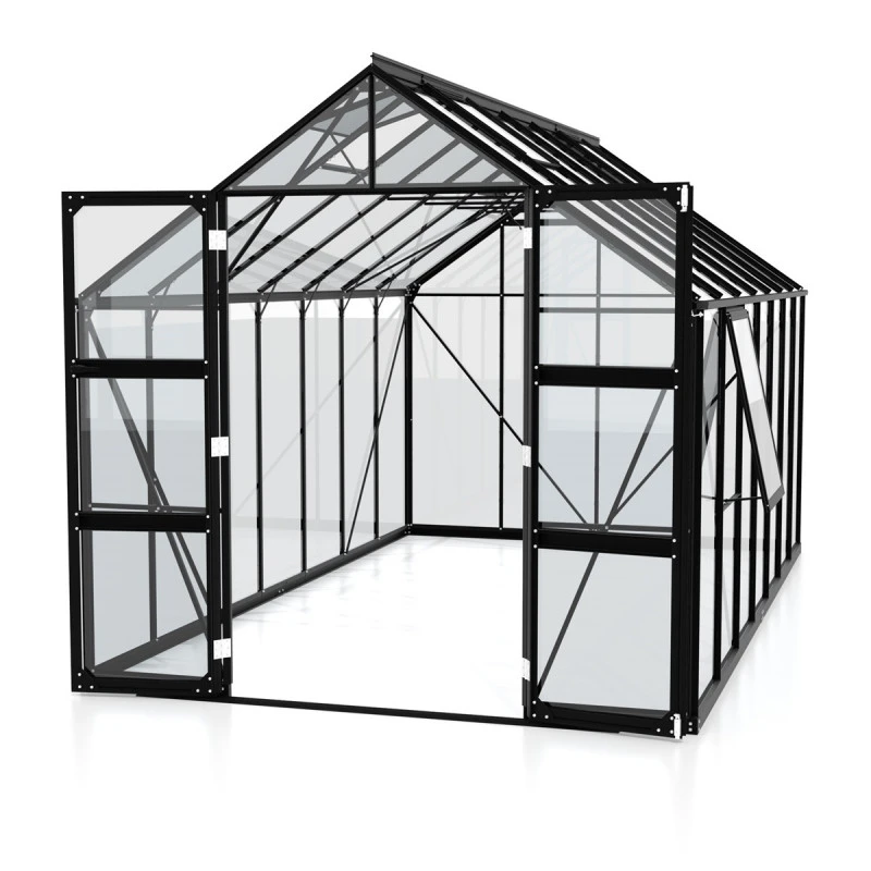 L’avis du spécialiste sur la serre de jardin Olymp 11,5m² en alu noir et verre de sécurité 3mm – Vitavia :