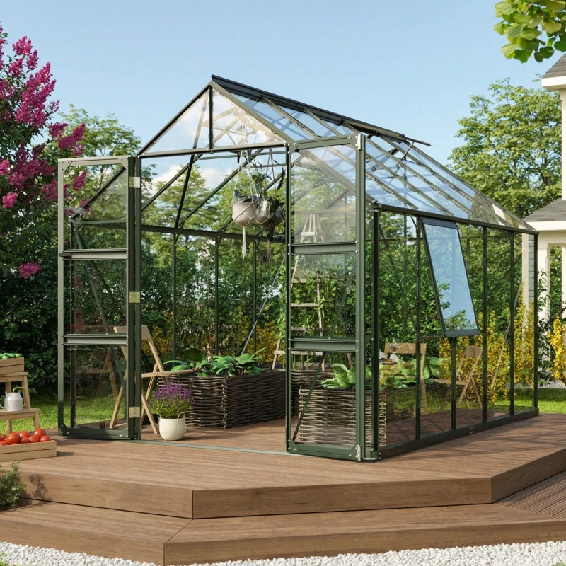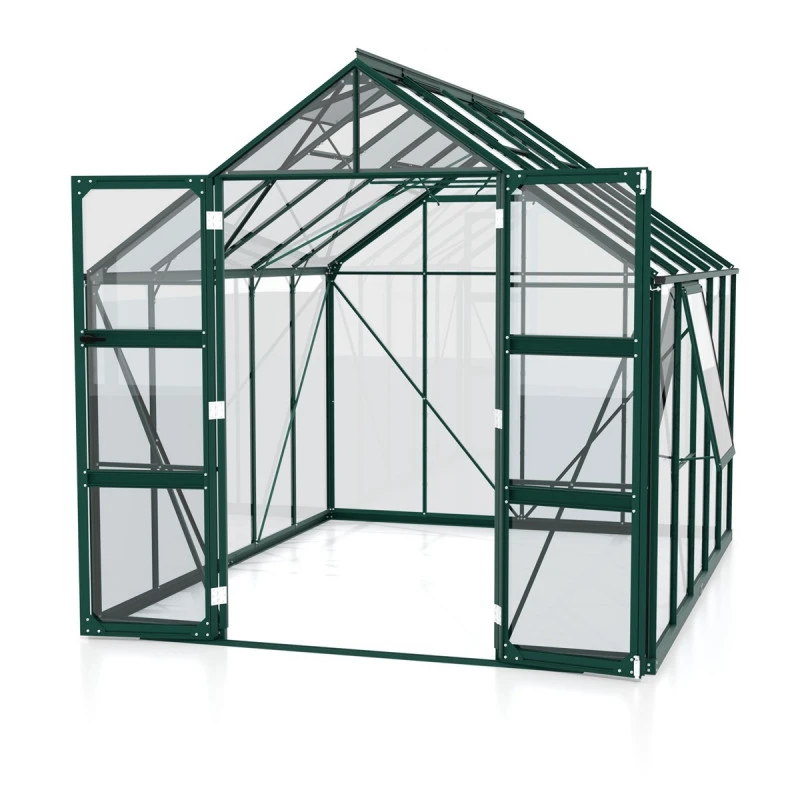 L’avis du spécialiste sur la serre de jardin Olymp 8,3m² en alu émeraude et verre de sécurité 3mm – Vitavia :