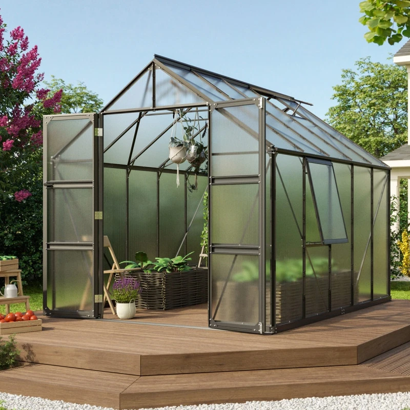 L’avis du spécialiste sur la serre de jardin Olymp 8,3m² en alu noir et polycarbonate 6mm – Vitavia :