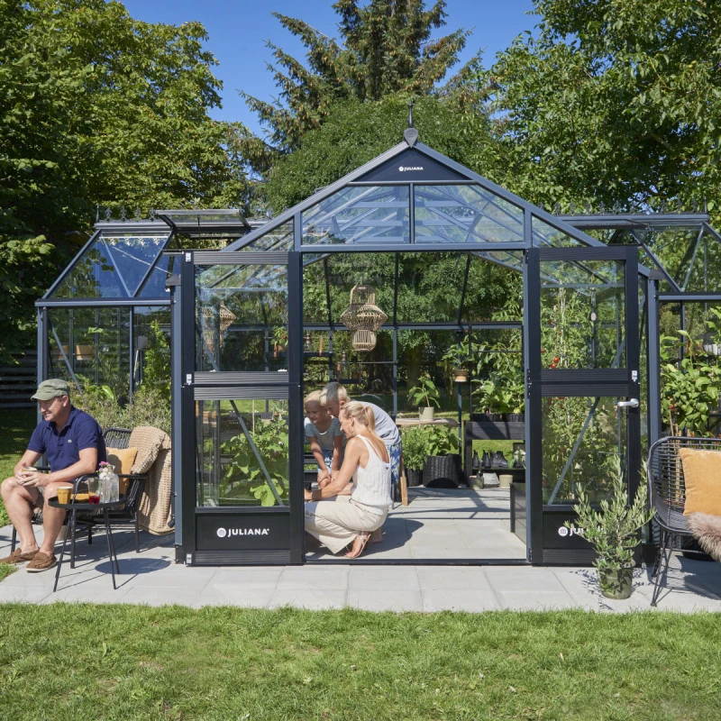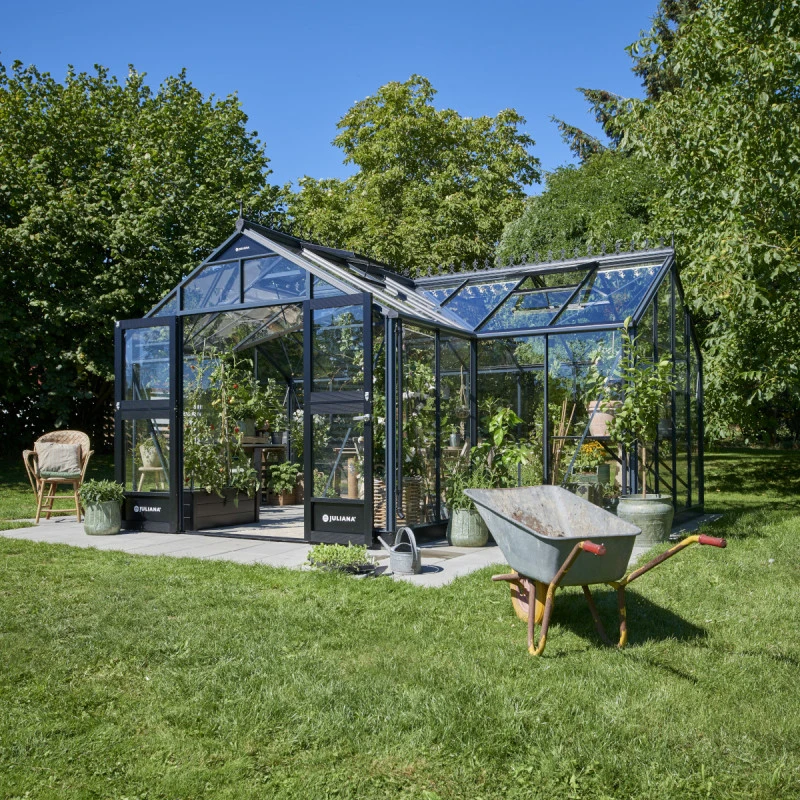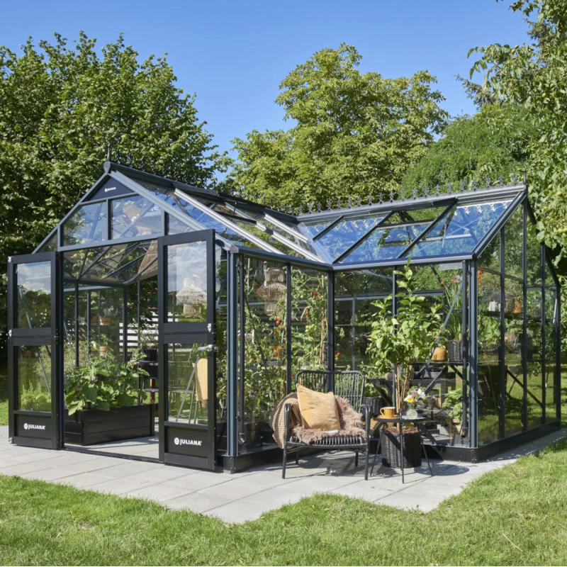 L’avis du spécialiste sur la serre de jardin Orangerie 21,5m² en aluminium noir et verre trempé 3mm – Juliana