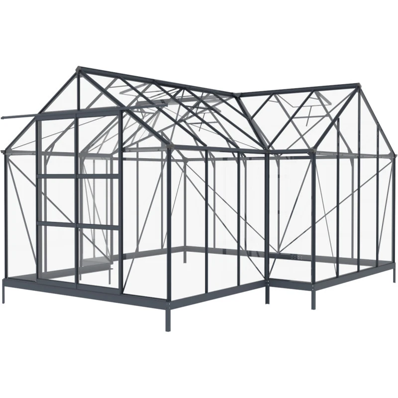 La structure en aluminium, avec une épaisseur de 1,2mm, offre une combinaison optimale de légèreté et de robustesse. Résistante aux intempéries, elle est conçue pour durer et supporter les conditions extérieures les plus variées. Les dimensions extérieures de 427x366cm offrent un espace généreux de 12 m² pour réaliser votre jardinage en toute créativité.