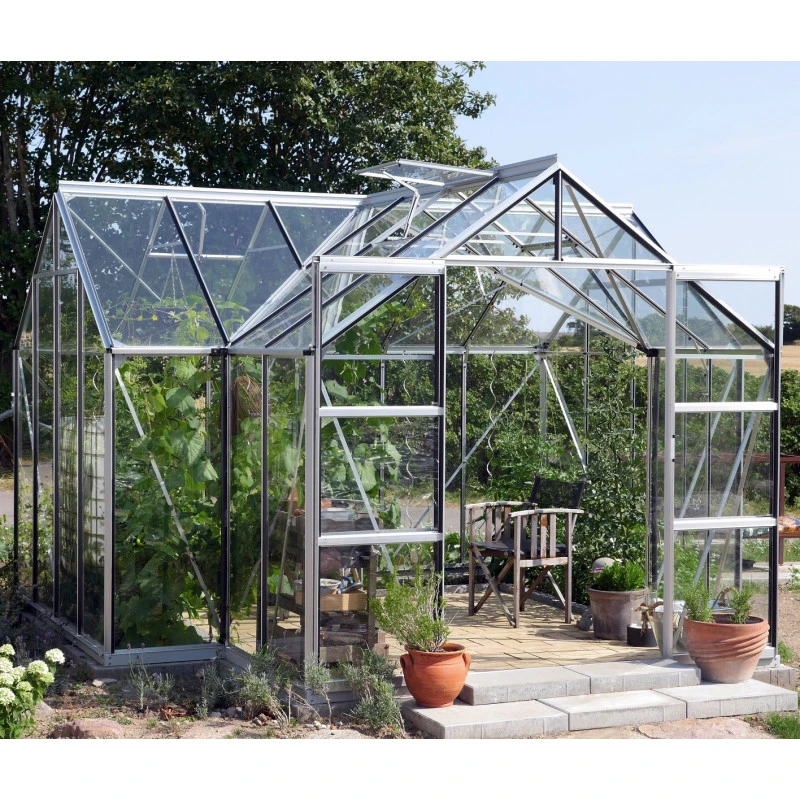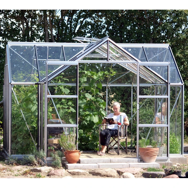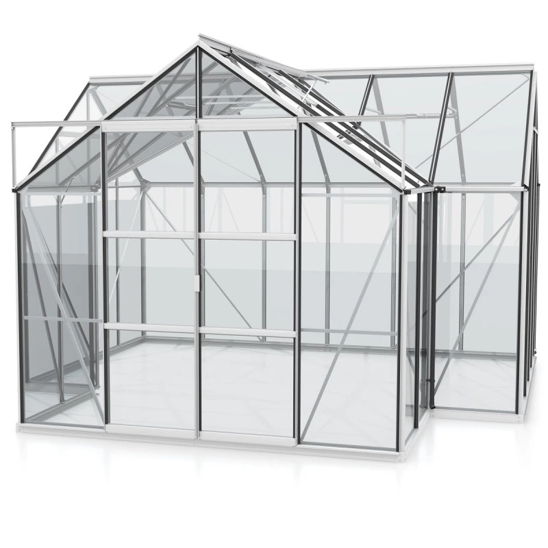 La serre de jardin Sirius est conçue en aluminium peint par poudrage pour une excellente résistance à la corrosion et aux intempéries. Vous avez le choix entre 3 couleurs – aluminium anodisé, émeraude et noir afin d’adapter la serre à votre style.