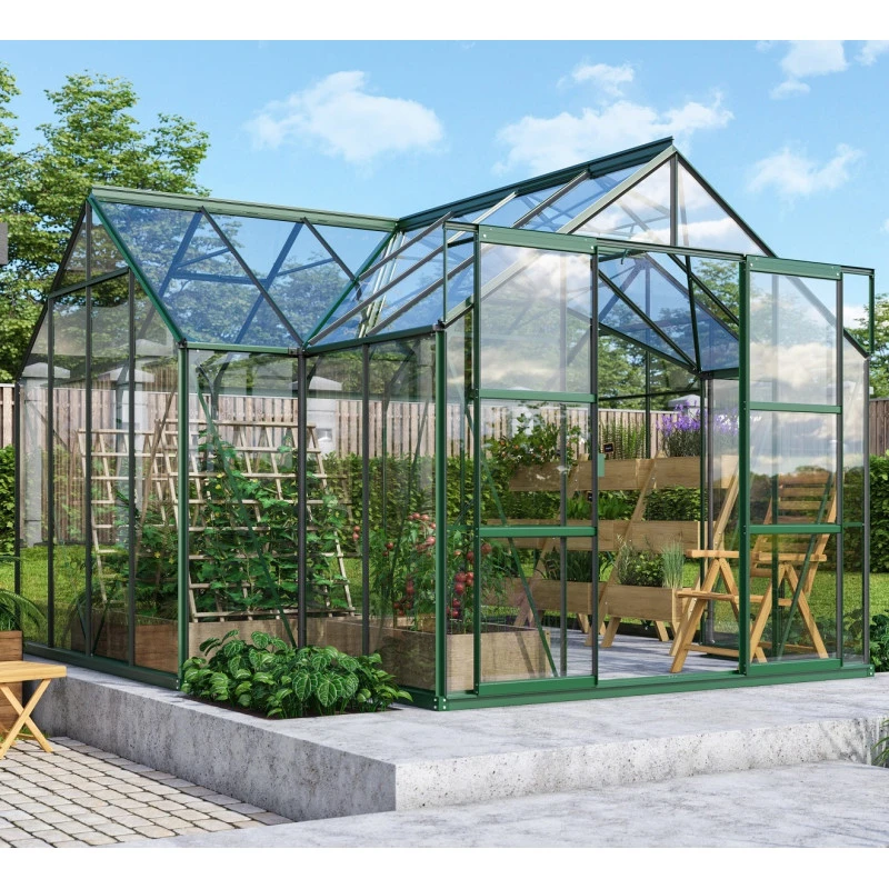 La serre de jardin Sirius est conçue en aluminium peint par poudrage pour une excellente résistance à la corrosion et aux intempéries. Vous avez le choix entre 3 couleurs – aluminium anodisé, émeraude et noir afin d’adapter la serre à votre style.