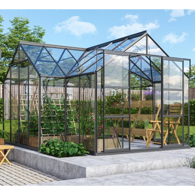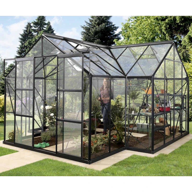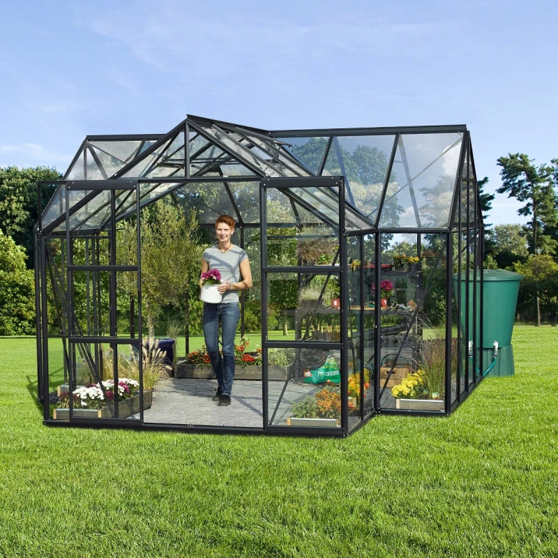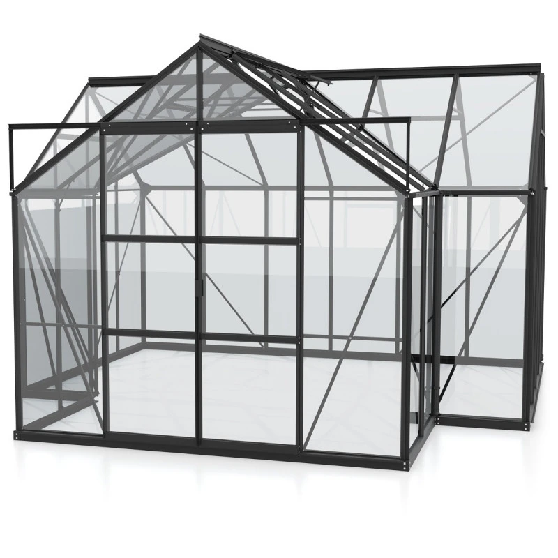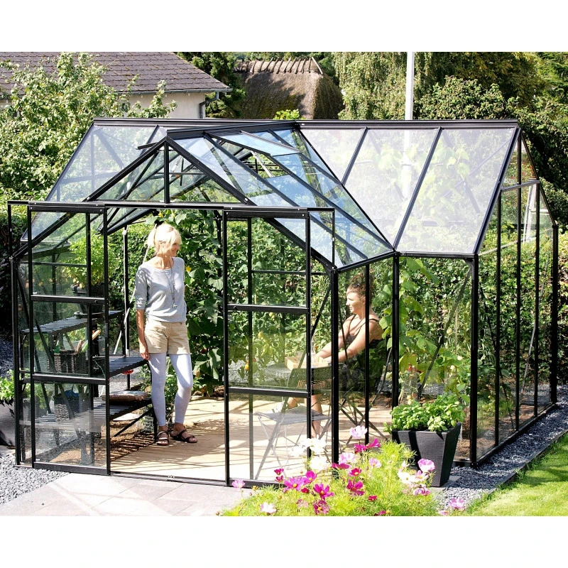 La serre de jardin Sirius est conçue en aluminium peint par poudrage pour une excellente résistance à la corrosion et aux intempéries. Vous avez le choix entre 3 couleurs – aluminium anodisé, émeraude et noir afin d’adapter la serre à votre style.