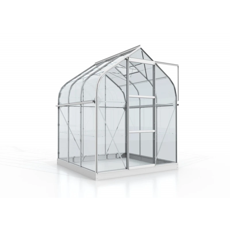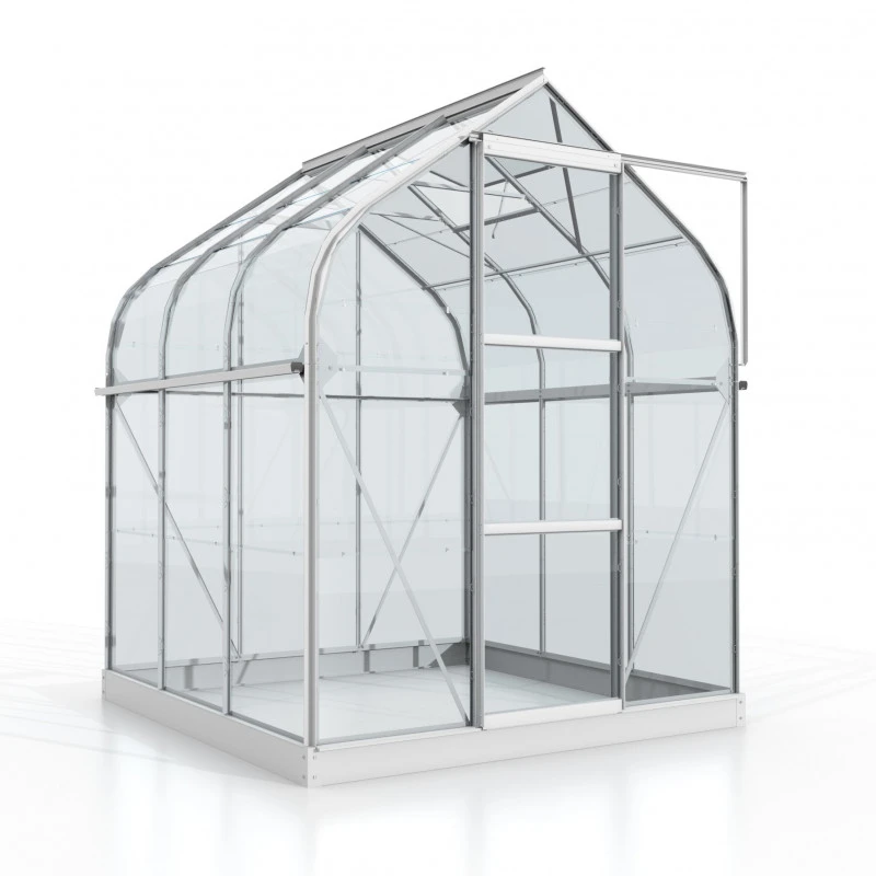 La serre de jardin Orion 3800 s’installe parfaitement sur une embase en acier galvanisé, disponible en option. Cette sous-structure durable permet un montage au niveau du sol et à angle droit, très important pour l’utilisation de la serre à long terme.