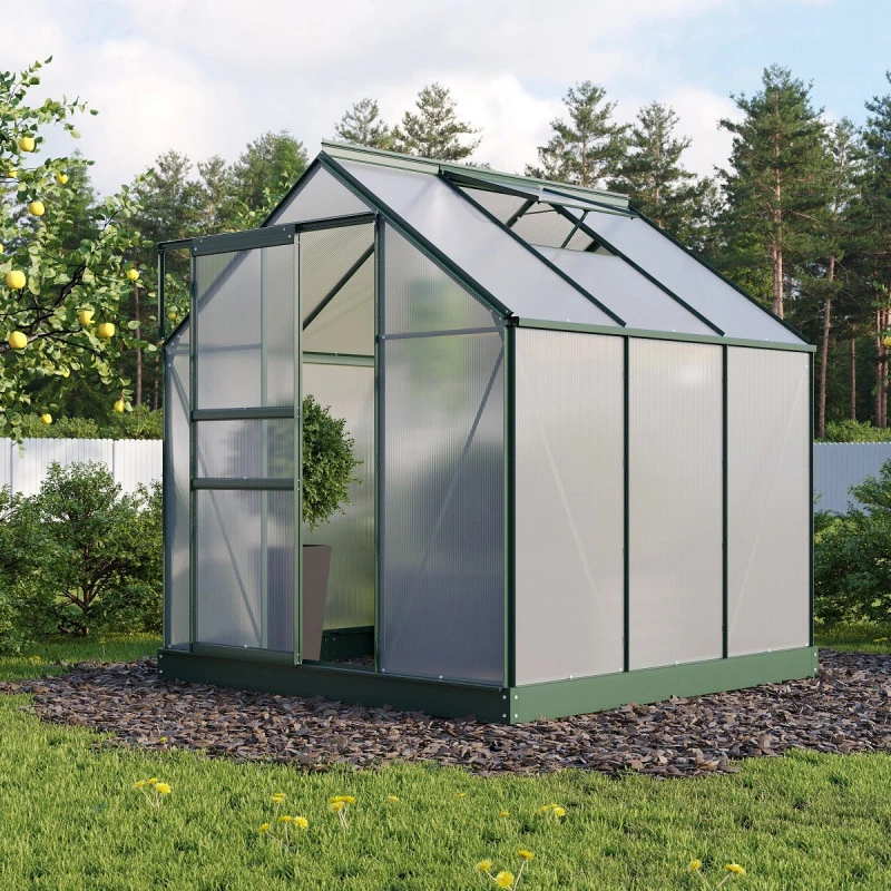 La serre de jardin Planet possède une structure solide et robuste en aluminium. Le revêtement en poudre de couleur verte émeraude est une finition de qualité qui renforce la résistance de l’aluminium aux aléas climatiques et à la corrosion tout en donnant à la serre un aspect bel et original à long terme. L’embase en acier incluse assure la stabilité optimale de la structure et son installation correcte au niveau du sol et à angle droit.