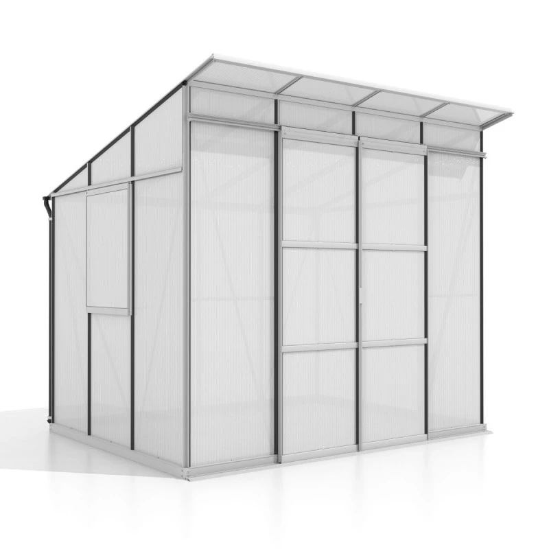 La serre de jardin en alu et polycarbonate Playa est dotée d’une double porte coulissante au seul bas qui facilite vos entrées et sorties. Cadenassable (cadenas non fourni), elle mettra votre contenu en toute sécurité. La porte et les fenêtres latérales favorisent la ventilation naturelle et la circulation de l’air frais à l’intérieur de la serre.