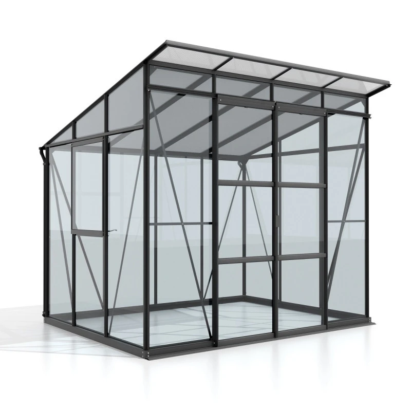 La serre de jardin Playa est conçue en aluminium noir pour une allure élégante et une grande robustesse dans le temps. La finition par poudrage améliore la résistance du cadre à la corrosion et aux intempéries. Le montage est simple et facilité par l’embase en acier galvanisé incluse.