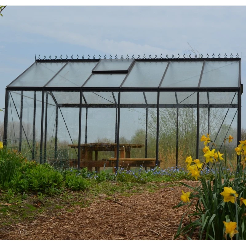 Le verre conserve un bel aspect durablement, et ne requiert qu’un entretien minimal. Le vitrage est clair au niveau des parois, pour un apport maximal de lumière au cours de la journée lorsque le soleil est plus bas, et un toit en verre martelé qui procure un léger voilage pour préserver vos cultures lorsque le soleil est au zénith.