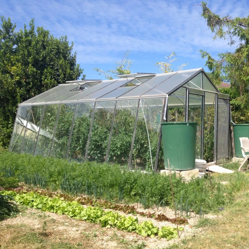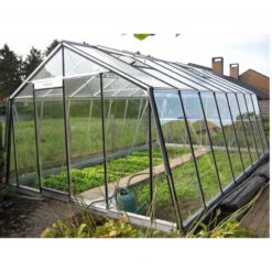 La structure de la serre se compose de profilés d’aluminium légers et très robustes, pour un montage simple et rapide, en suivant la notice détaillée. Le vitrage est du verre de sécurité de 4mm d’épaisseur, clair pour les parois et martelé au niveau de la toiture.