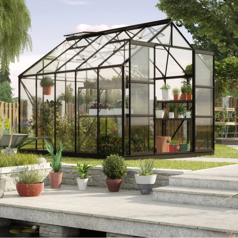 L’avis du spécialiste sur la serre de jardin Uranus 8,3m² en alu noir et panneaux de verre de sécurité 3mm – Vitavia :