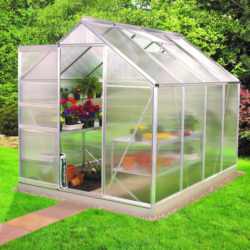 La serre de jardin Venus 5000 dispose d’une surface totale de 5m² et possède une structure en aluminium anodisé qui garantit une protection durable contre la corrosion et les intempéries. Le poids léger de l’aluminium facilite le montage.