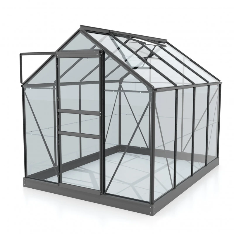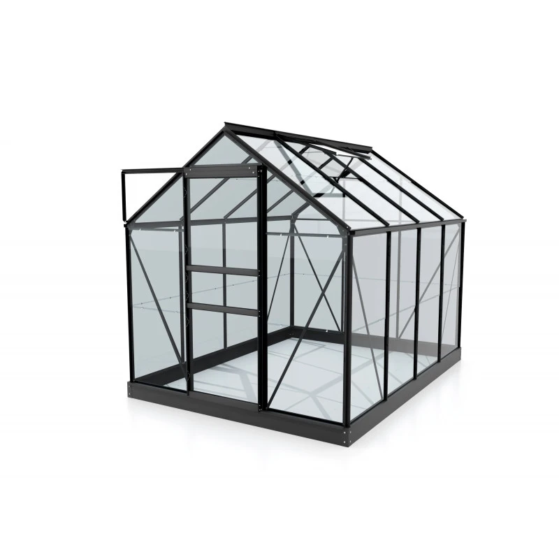Conçue pour une utilisation durable, la serre de jardin Venus 5000 demande un montage correct au niveau du sol et à angle droit. Vous pouvez l’obtenir à l’aide de l’embase en acier galvanisé, disponible en option.