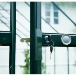 La serre de jardin en alu et polycarbonate Venus 6200 est dotée d’une porte coulissante simple à roulement à billes. Large de 61 cm et haute de 161 cm, elle offre un accès confortable. Cadenassable (cadenas non fourni), elle met votre contenu en toute sécurité.