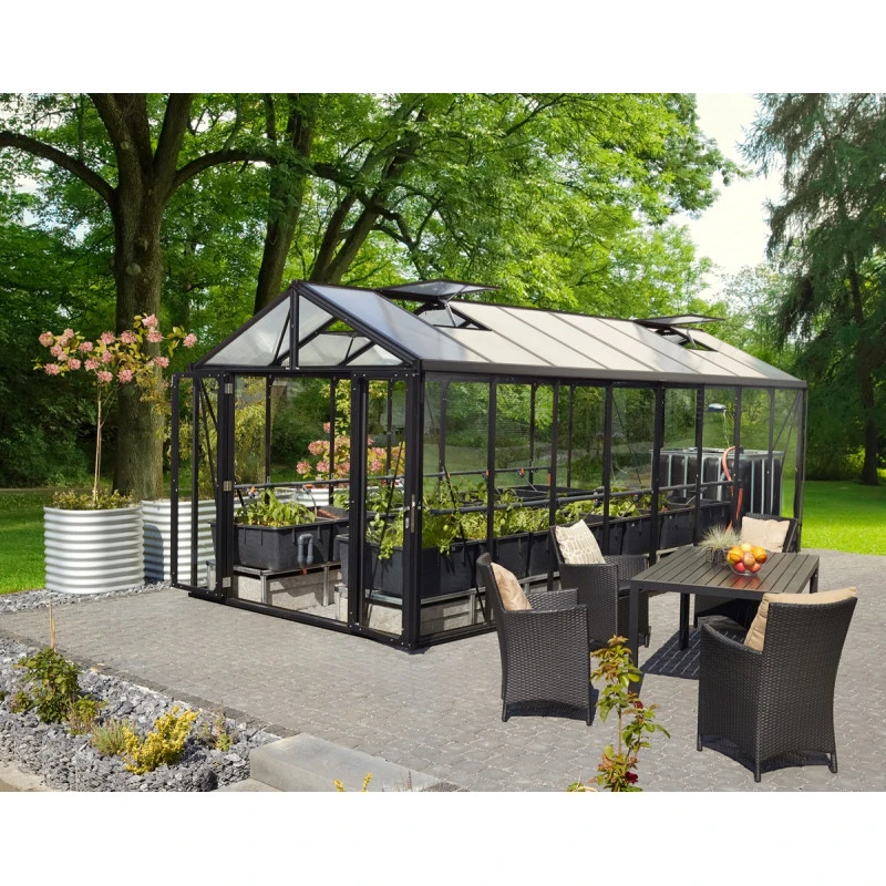 Fonctionnelle et performante, la serre de jardin Zeus Comfort 15700 existe en 6 tailles, 2 couleurs et 3 types de vitrage pour s’intégrer dans tous les paysages. Il ne vous reste qu’à démarrer vos projets !