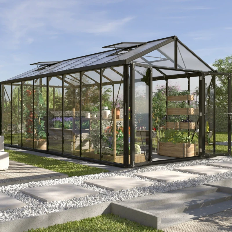 L’avis du spécialiste sur la serre de jardin Zeus Comfort 15,7m² en alu noir et vitrage combiné – Vitavia :