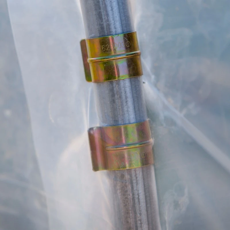 Le film, en polyéthylène résistant de 180gr/m², avec un doublement en couverture (2x 180gr/m², ce qui améliore fortement leur longévité, l’isolation et l’effet de serre), est soutenu par une robuste armature en acier galvanisé dont les tubes font 32mm de diamètre. Pour preuve de la grande qualité des matériaux utilisés, Richel offre une garantie de 20 ans sur l’armature et de 4 étés et 5 hivers sur le film.