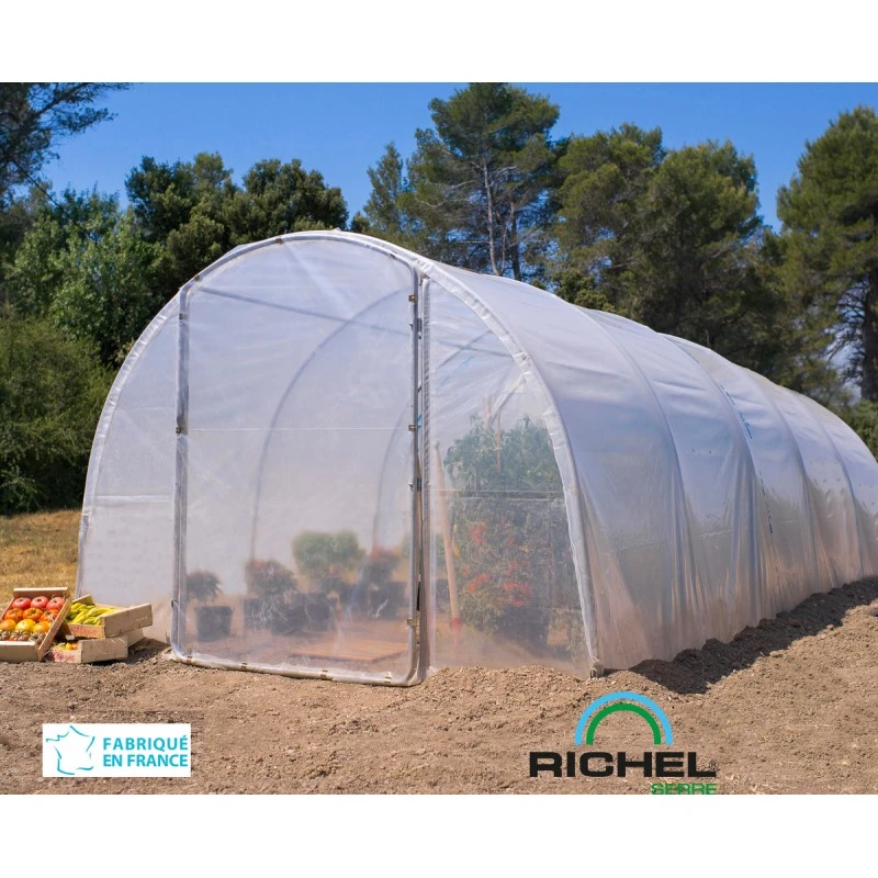 Pour une serre tunnel de fabrication française, de plus de 20m², avec une conception pieds droits, ne réfléchissez pas, optez pour le modèle Richel!
