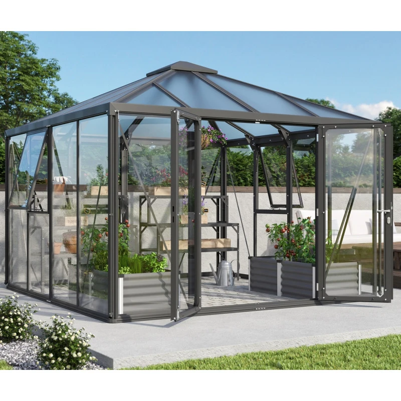 . Plaques en polycarbonate alvéolaire de 10mm pratiquement incassables sur le toit et panneaux en verre de sécurité sur les côtés