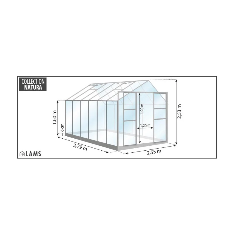 L’avis du spécialiste pour la serre Laurus Uranus 9,85m² en aluminium laqué gris et verre trempé 3mm + embase incluse – Natura Lams