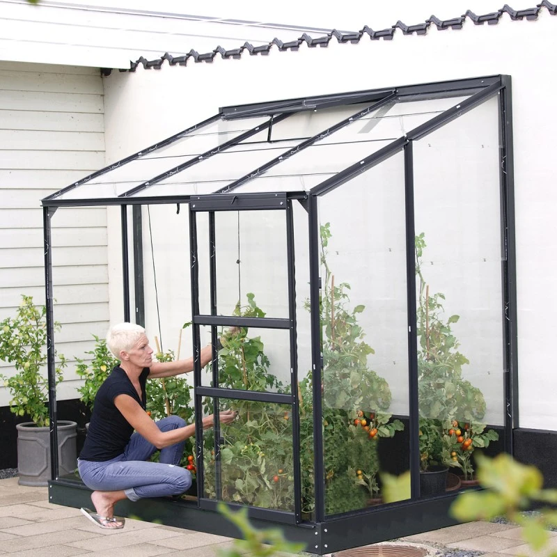 Avec une surface de 2,50m², la serre adossée Melissa Ida est une serre compacte qui présente toutes les caractéristiques et le haut degré de qualité des plus grandes. Le vitrage de la serre est du verre trempé de 3mm d’épaisseur, 7 fois plus résistant que le verre horticole ordinaire. Le vitrage est d’une transparence cristalline, il ne craint pas les rayures et conserve un bel aspect durablement. Les montants de la structure sont en aluminium, robuste et léger à manier, recouvert d’un laquage gris anthracite élégant qui s’intègrera dans tout type d’environnement.