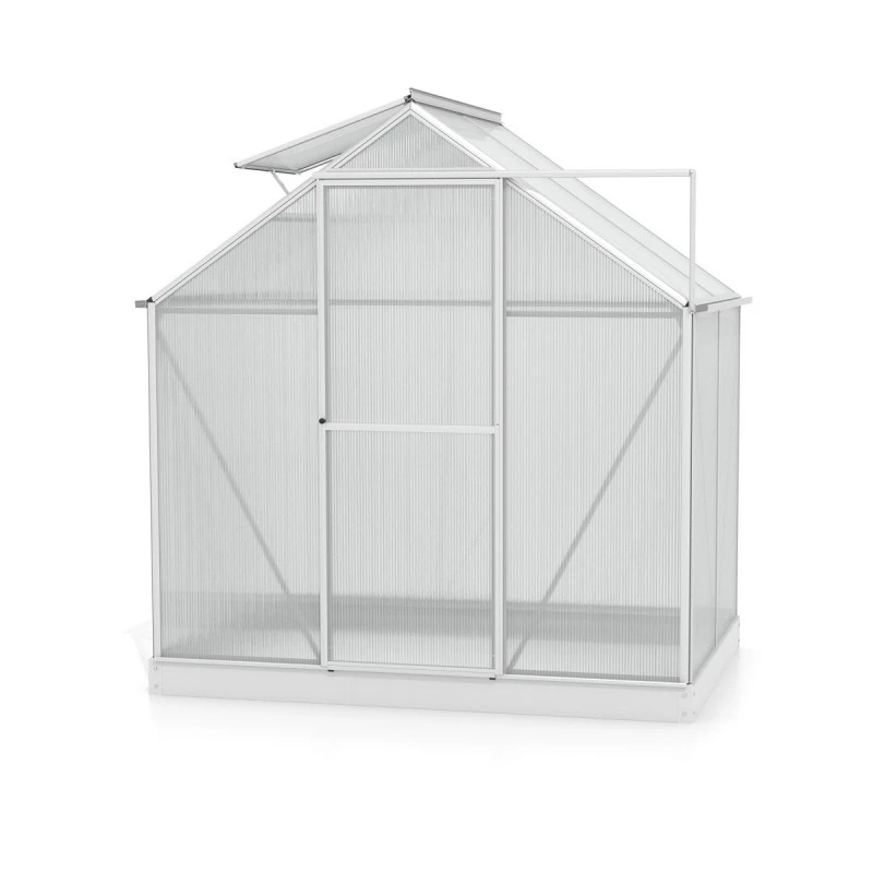 La serre de jardin en alu et polycarbonate Triton offre un accès aisé grâce à sa porte large de 61cm et haute de 164cm. Elle peut être montée soit comme une porte coulissante pour gagner de la place soit comme une porte battante. Une fois ouverte, elle apporte de l’air frais à vos cultures. Les fenêtres de toit incluses – une ou deux selon la taille de la serre, contribuent également à son aération naturelle.