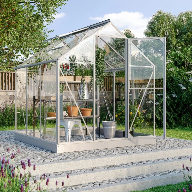 Lumineuse, la serre de jardin Triton est recouverte de plaques de verre de sécurité épaisses de 3mm. Son effet cristallin favorise le développement des plantes avides de lumière et vous permet de surveiller vos cultures de l’extérieur. Cependant, lors des périodes trop ensoleillées, il est conseillé d’ombrager la serre pour éviter l’effet de brûlure. Outre son aspect esthétique, le verre de sécurité est reconnu pour sa capacité de se fragmenter en petits morceaux non tranchants en cas de casse. Le risque de blessures est donc fortement réduit.