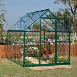 Serre De Jardin En Aluminium Anthracite Et Verre Trempé 4mm RINCA 3,5m² + Embase – Green Protect