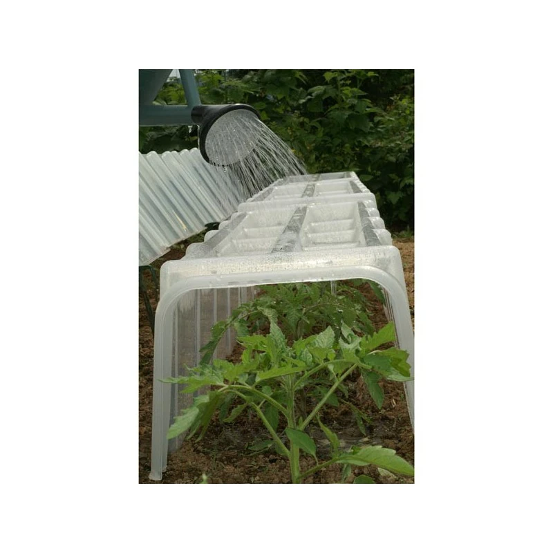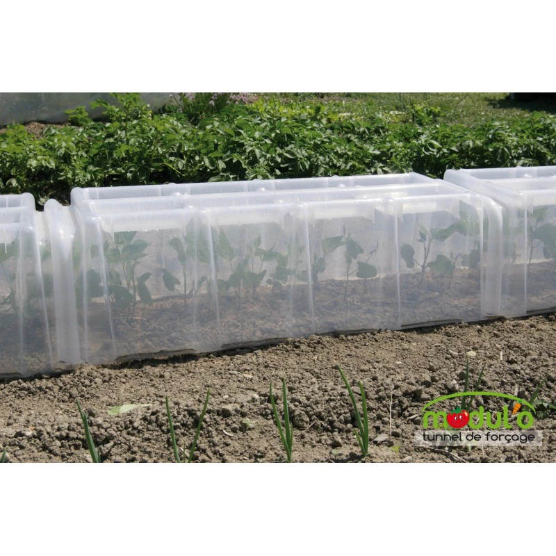 Ce sont des bases en polypropylène rigide d’un peu plus d’1 mètre que vous pouvez cumuler et que vous fermez par des embouts, de manière à créer un tunnel de culture à la longueur que vous souhaitez. La longueur est donc modulable à souhait en ajoutant ou retirant des bases tunnel.